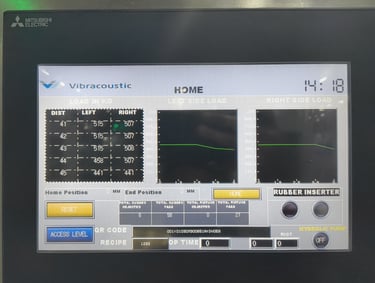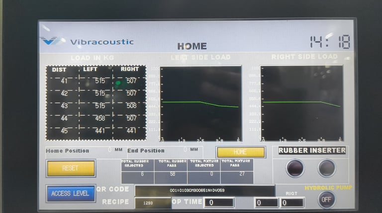 In this machine, rubber components are inserted from both sides of a fixture using pneumatic cylinder. The inserted rubber is then scanned using a Keyence vision camera to ensure proper placement and quality.