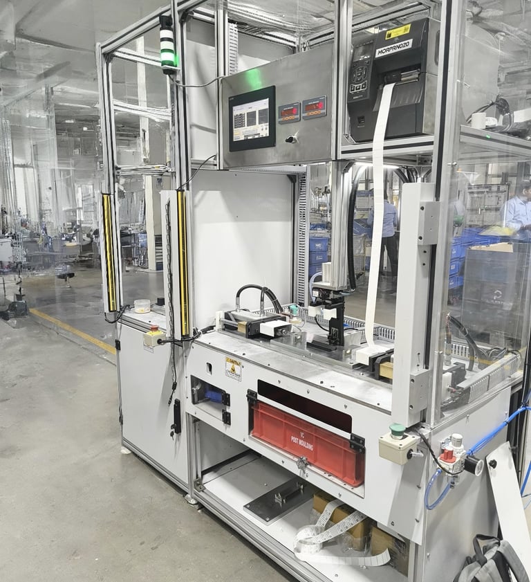 Additionally, variable data is printed through the PLC, and a QR code is generated and scanned using a Keyence scanner. The scanned data is then stored in the HMI for tracking and traceability.